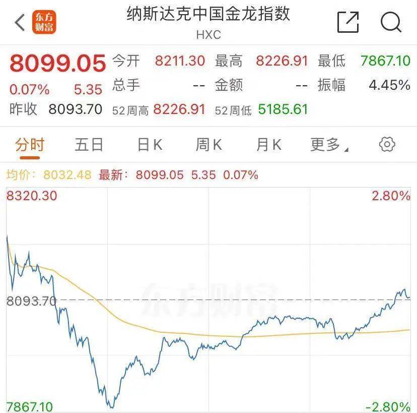 纳斯达克中国金龙指数一度跌超2.7%尾盘成功翻红