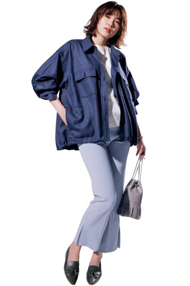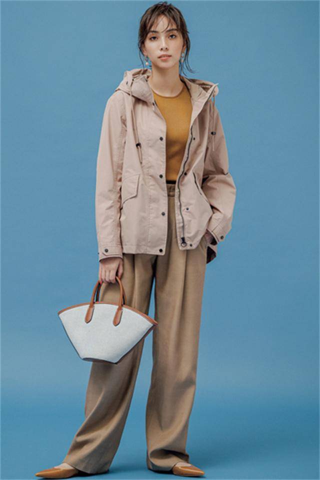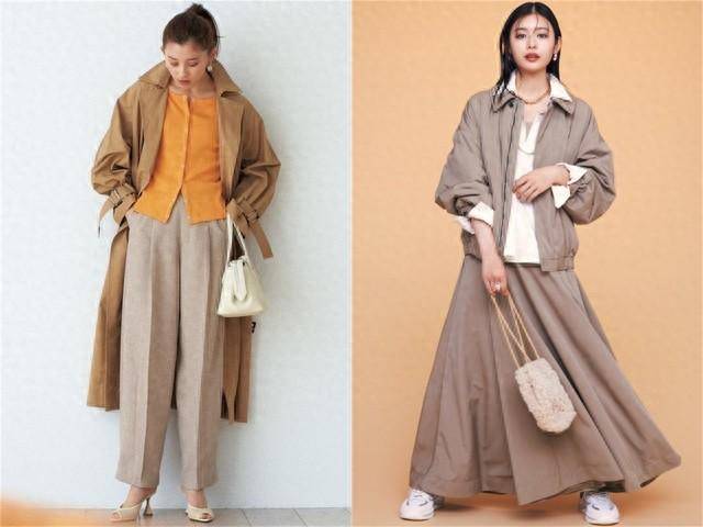 长裤和运动外套,选择流行的米色,