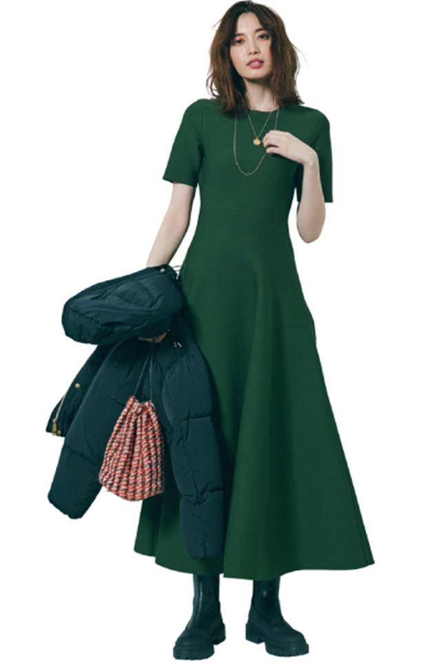 立体喇叭形轮廓的针织连衣裙,