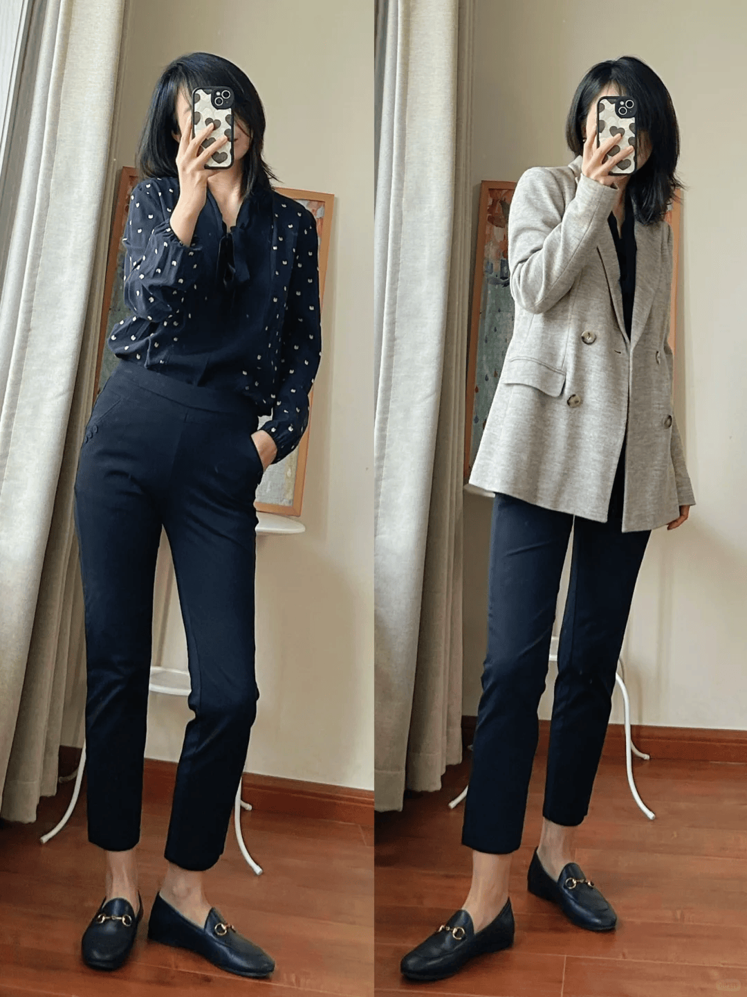 西装外套与烟管裤的搭配,是展现职场女性干练与优雅的最佳组合。