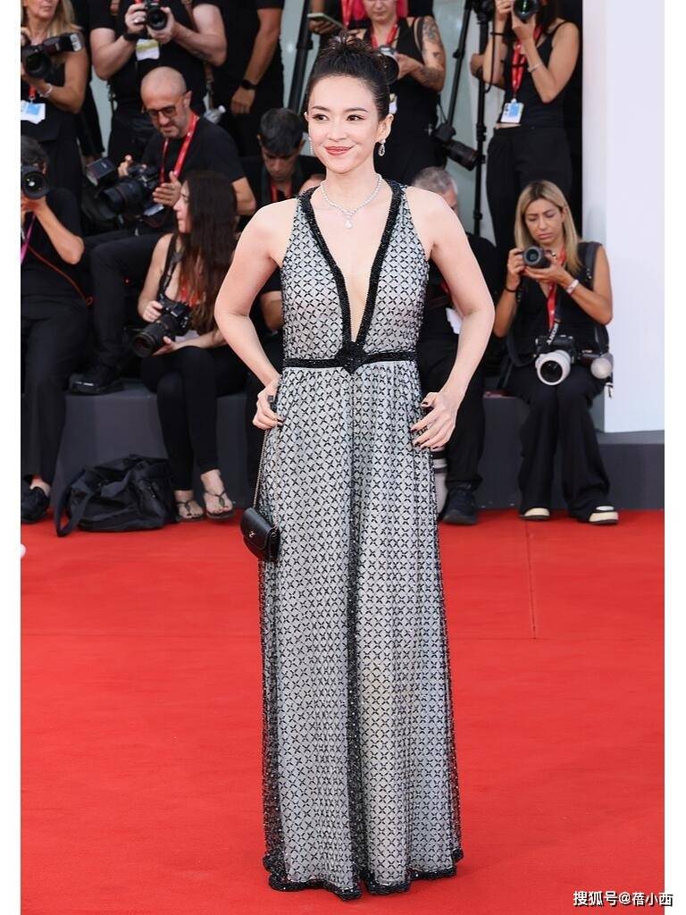 别有一番风味的是她的高盘发造型,这种发型不仅凸显了她脸型和五官的立体感,更增添了一种典雅高贵的气质。搭配上深V连衣裙,整体造型既大方又高雅,让人一眼就能感受到她的自信与从容,这或许就是她为何能在演艺圈和时尚圈都游刃有余的原因。