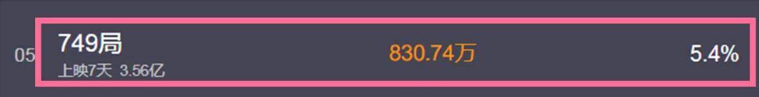 《749局》的日排片,10月4日仅有9%左右,10月7日就降到了只有5.4%,这比刚上映第一天时35%的排片,已经相去甚远,这说明,连电影院都对电影《749局》没有票房信心了。