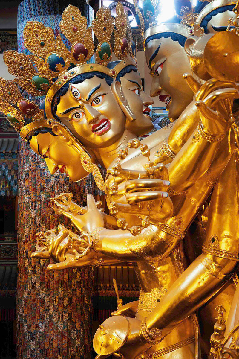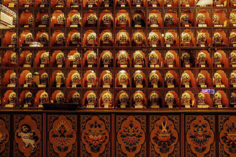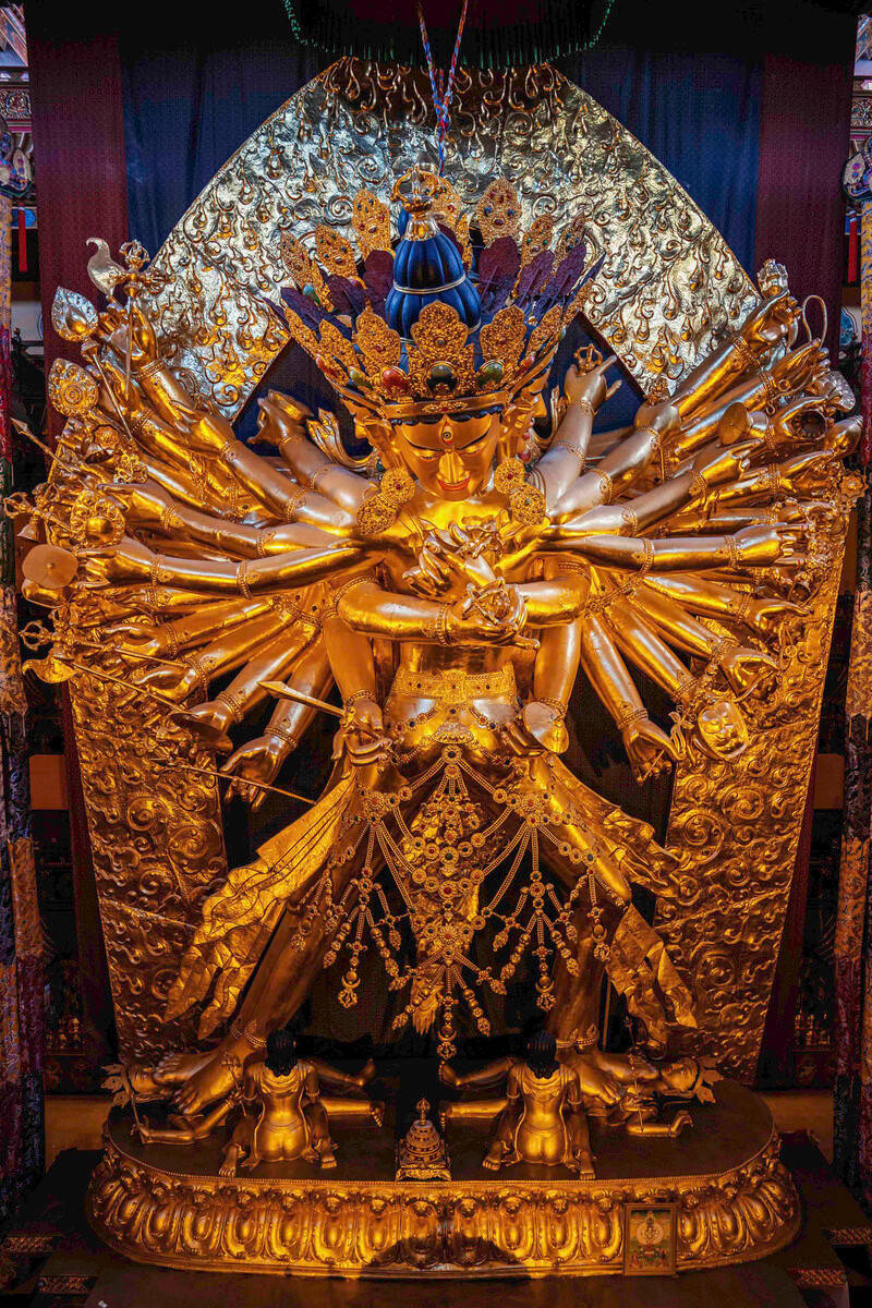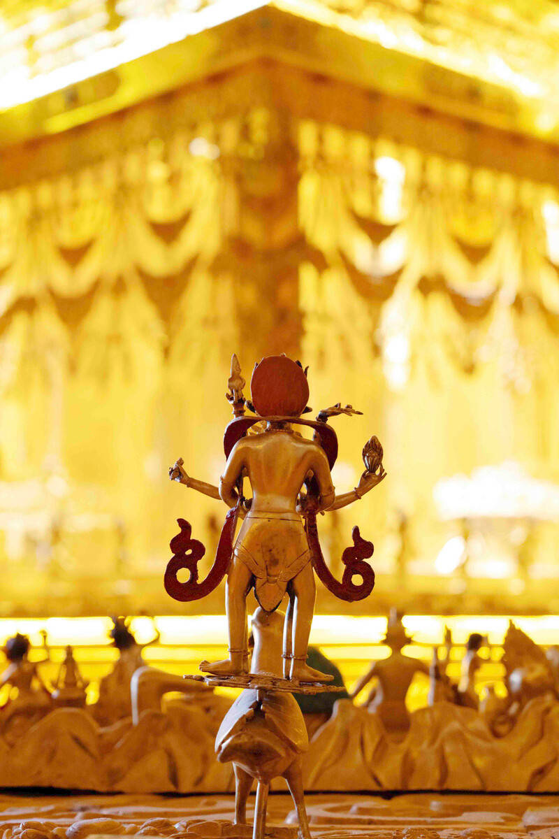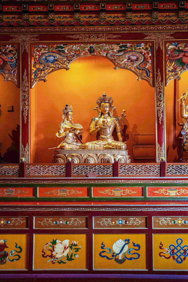 在博览中心内,镇馆之宝非全国室内最大的时轮金刚佛像莫属。金刚佛像高大肃穆,仿佛能够洞察世间的一切因果,给人以无限敬畏与宁静。除此之外,博览中心内还展出世界上室内最大的时轮立体坛城,它不仅是宗教信仰的象征,也是艺术与信仰完美融合的杰作。坛城的每一处细节都展示着藏传佛教深厚的宗教艺术,令人震撼不已。