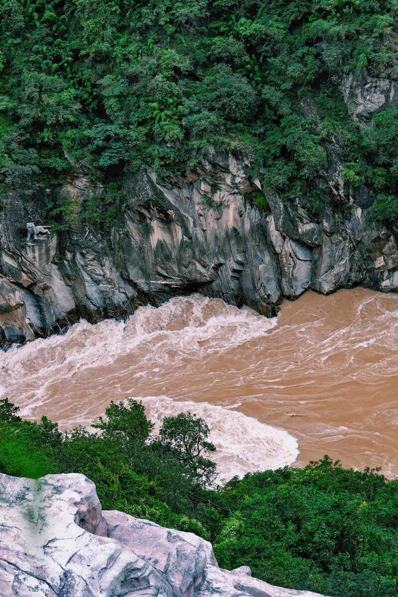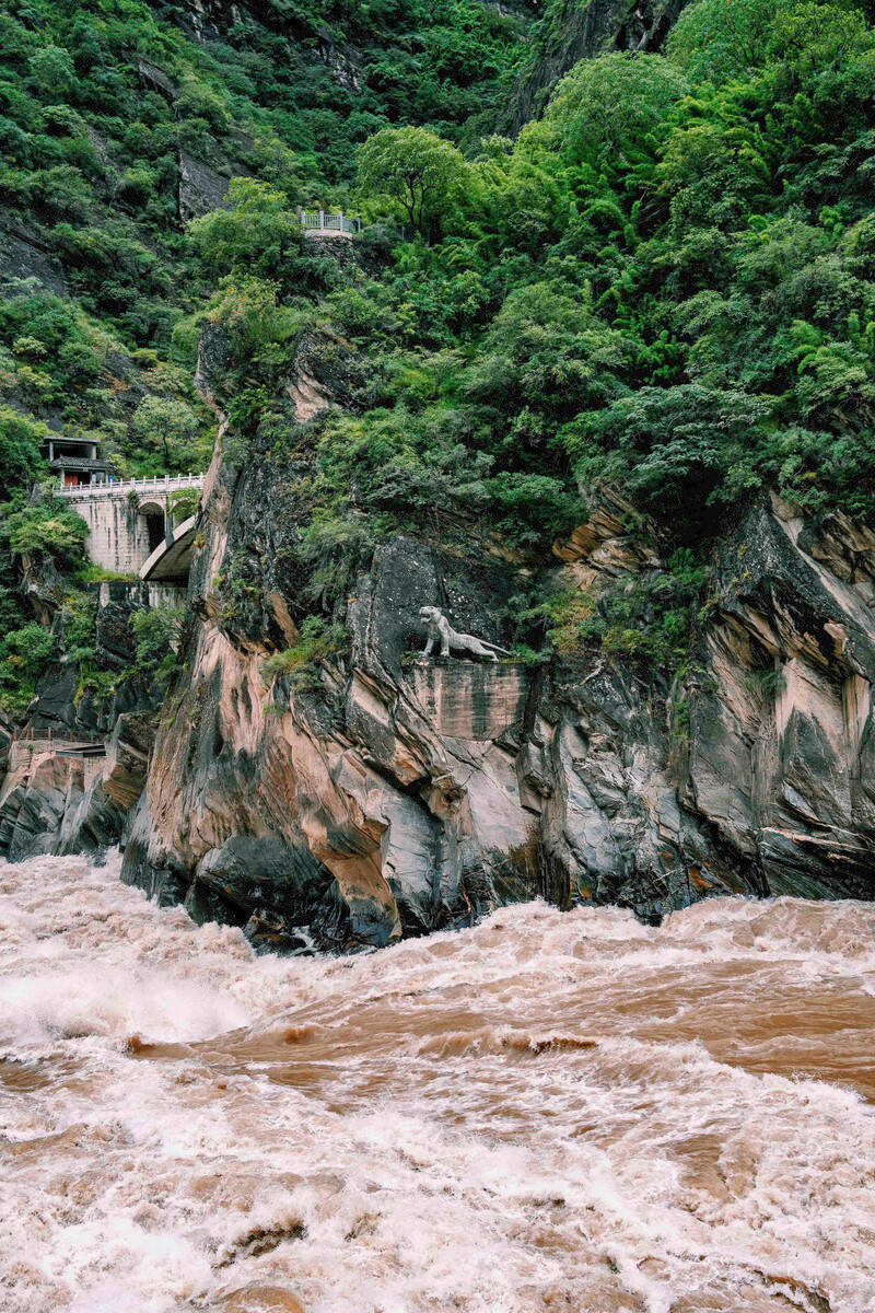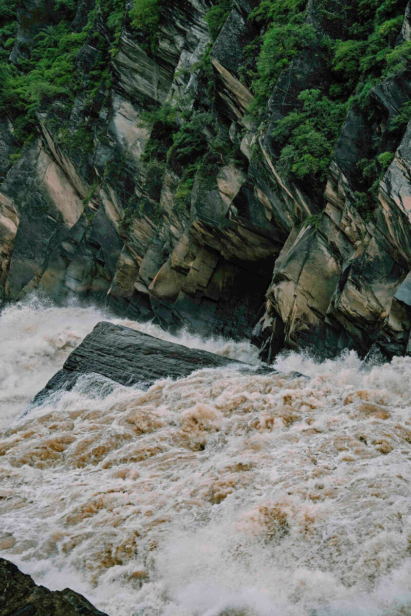 在这三段峡谷中,上虎跳被公认为最佳观赏地点。由于这里独特的断层结构,形成了天然的峡谷景观平台,是感受虎跳峡壮丽与险峻的理想之地。每年的雨季,金沙江水流骤增,激流汹涌,飞溅的浪花如同野兽般咆哮,撞击着岩石,带来无比震撼的视觉与听觉体验。巨大的水流力量在狭窄的江面上奔腾而下,激起无数浪花,仿佛大自然在展示它最原始的力量。
