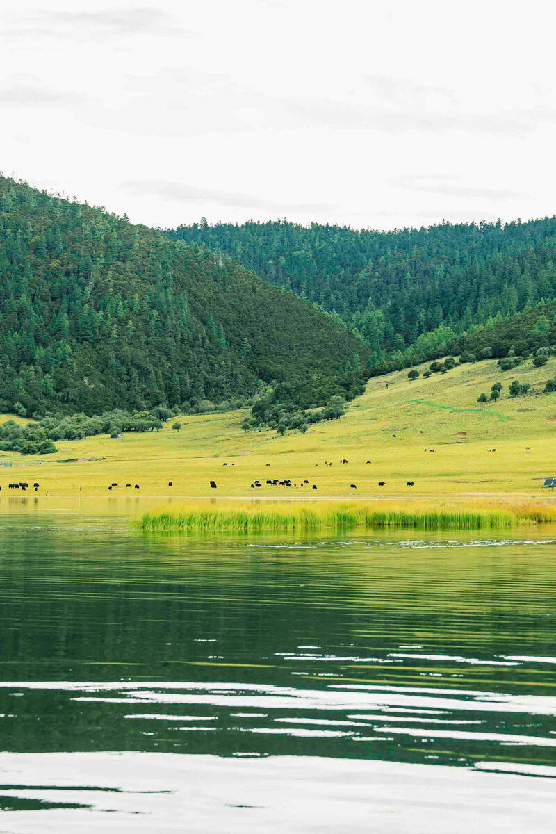 如果喜欢徒步,推荐前往灵犀湖。作为一个冷门的湖泊,灵犀湖依然保留着最原始的风景。从亚纳清波牧场出发,徒步的过程都是缓慢的分层上坡,途径牧场、森林、峡谷、溪流与流石滩等多个美丽的景点。
