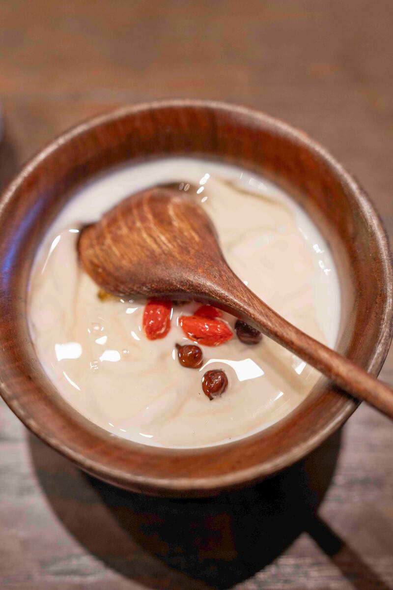 藏式木碗酸奶是这家餐厅的招牌菜之一,藏式木碗酸奶以其浓郁的奶香和独特的酸味著称。使用新鲜的牛奶制作,口感滑顺,搭配少许蜂蜜,更是让人回味无穷。