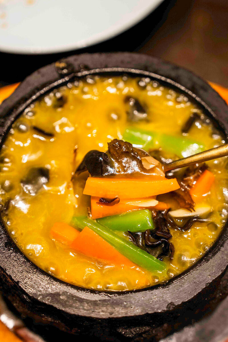 如果是肉食爱好者,大片的土司家宴牦牛肉一定会让你眼前一亮。肉质鲜嫩,味道浓郁,是一款极具地方特色的传统菜肴,绝对不容错过。或者是点脆皮藏香鸡,这道菜色泽金黄,外皮酥脆,鸡肉鲜嫩多汁,融合了藏香的独特风味,吃上一口,仿佛能感受到高原的气息。