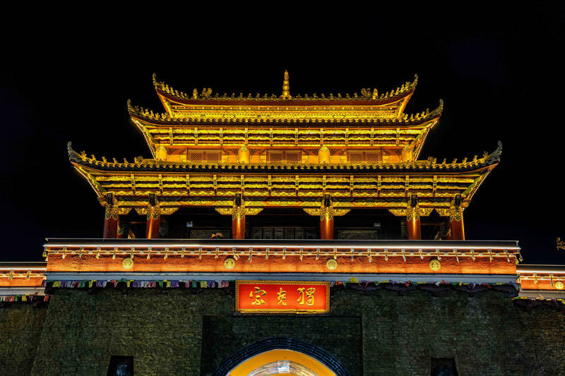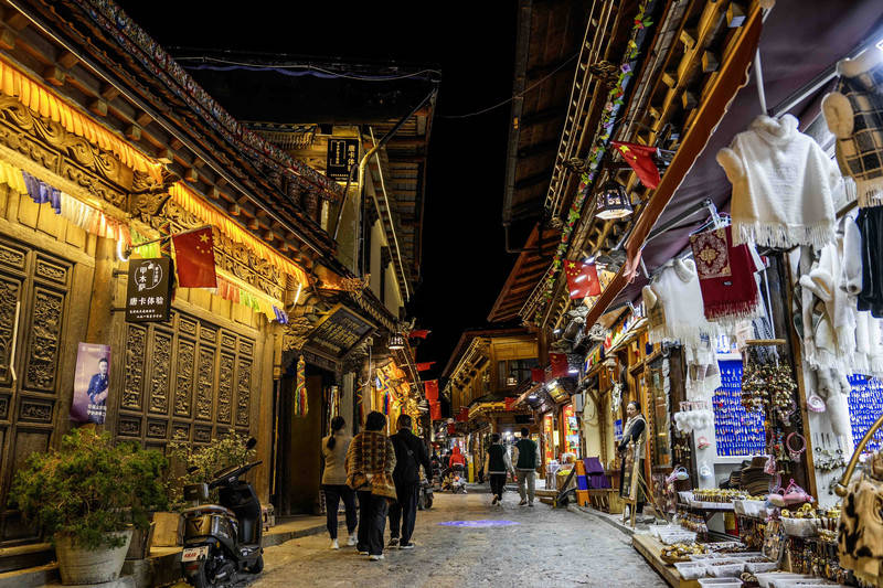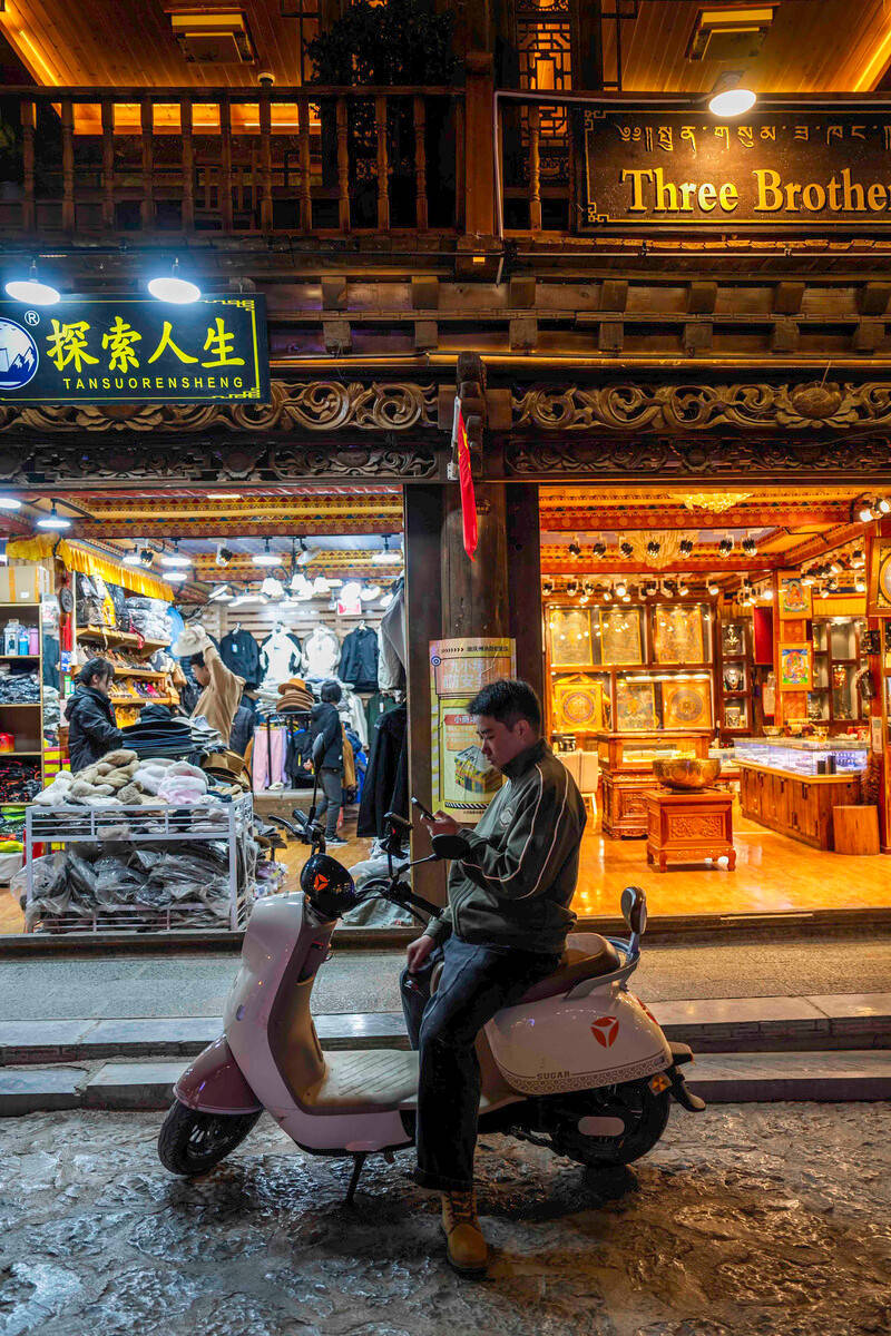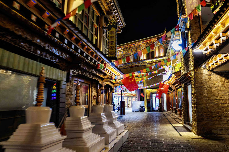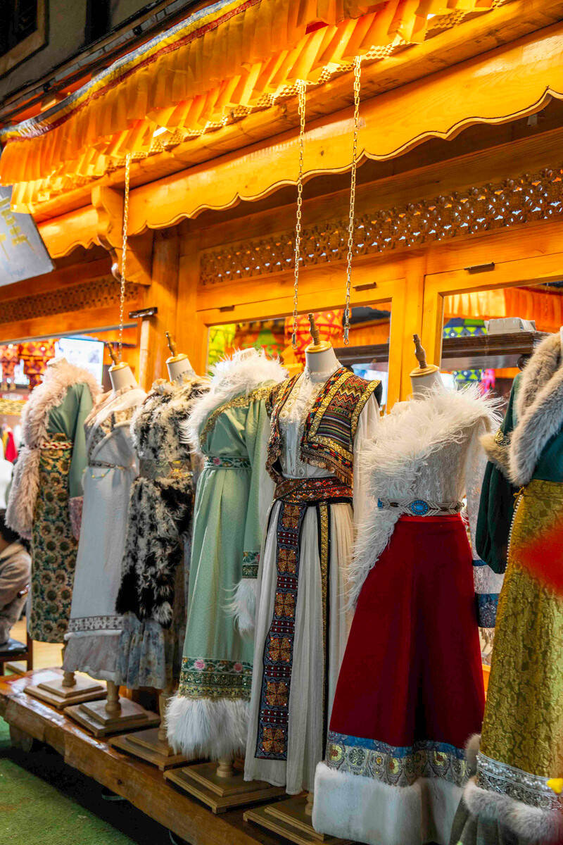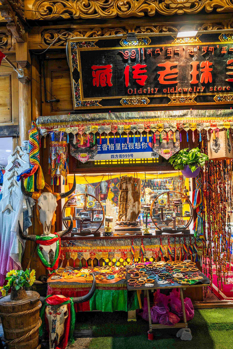 漫步在古城的小巷中,可以欣赏到藏式建筑的精致美,还能感受到浓厚的文化氛围。小店铺里,琳琅满目的藏族手工艺品吸引着眼球,独特的藏香、精美的唐卡和传统的藏饰在灯光下熠熠生辉。