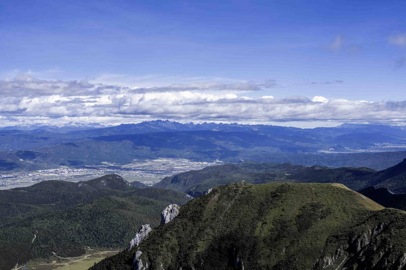 山顶是观赏梅里雪山、玉龙雪山等八大神山的理想之地。晴朗的日子里,俯瞰下方,连绵的雪山与湛蓝的天空交相辉映,令人陶醉。观景台上更可以全方位欣赏香格里拉市的全貌,绝对是摄影爱好者的天堂。