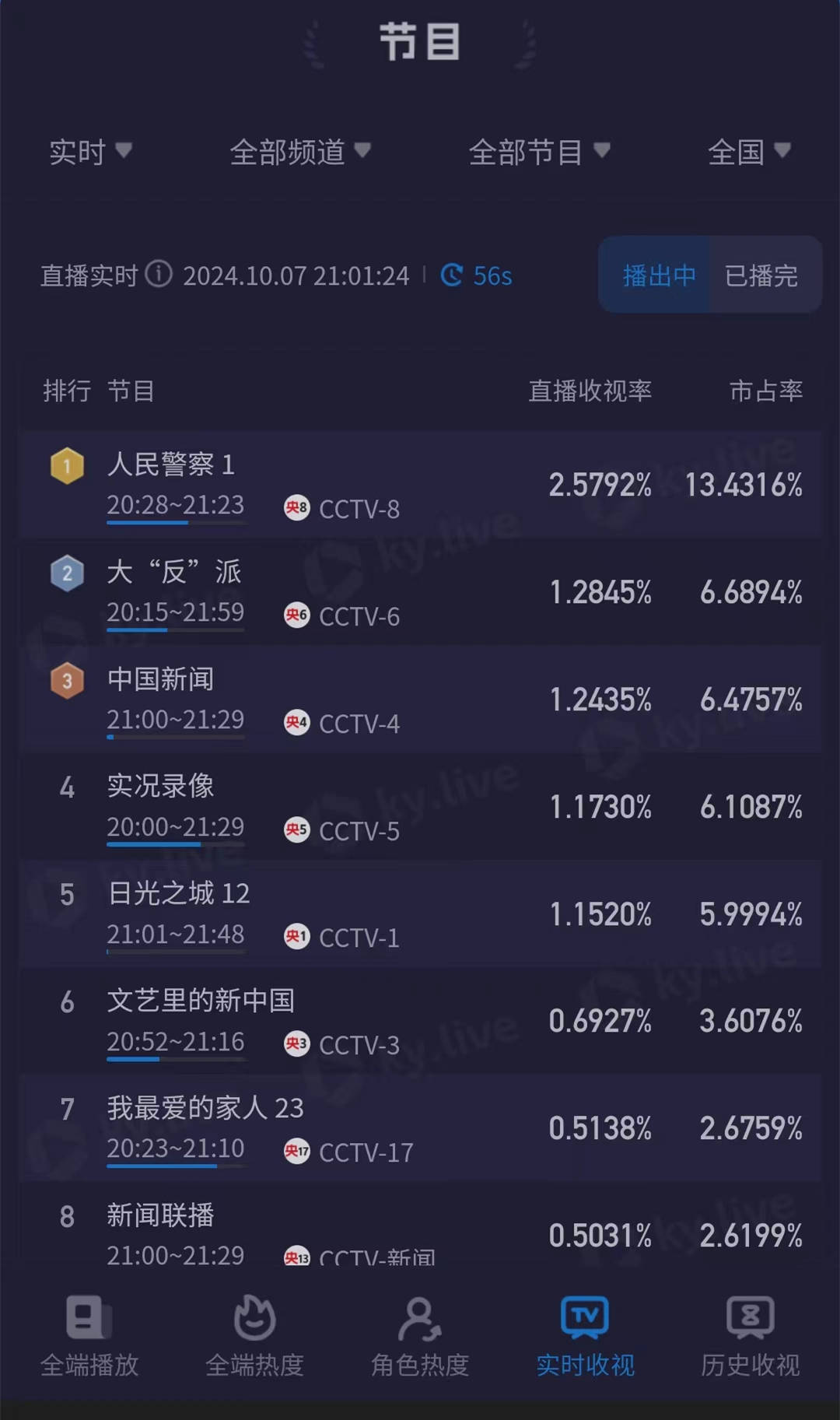 10月7日晚间,电视剧《人民警察》在央视电视剧频道单集首播。酷云实时的收视率数据显示,这部电视剧开播之后,收视率持续攀升,最终稳定在2.5%以上。从目前的数据走势来看,该剧后续剧情播出之后,收视率逼平3%的可能性很大。