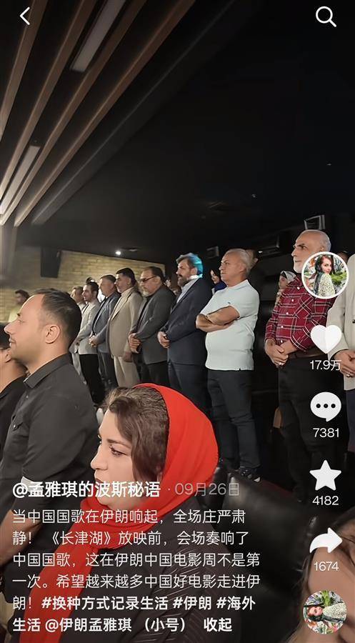 据央视新闻报道,近日,第四届中国电影周在伊朗首都德黑兰开幕,包括《长津湖》在内的多部中国优秀电影向伊朗观众展播。一位来自伊朗的博主孟雅琪晒出了观看现场的视频,引发国内外网友热议。