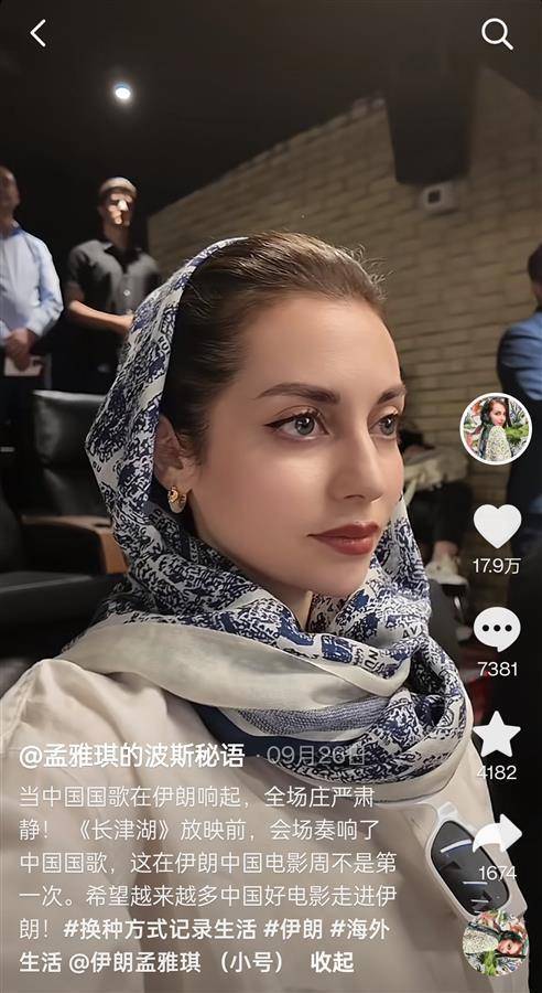 另据新华社此前报道,伊朗“网红博主”孟雅琪一直以来都与中国关系颇深,在多个视频平台,她向伊朗网友介绍中国文化和美食,也向中国网友介绍伊朗的社会百态,并且致力于公益事业。