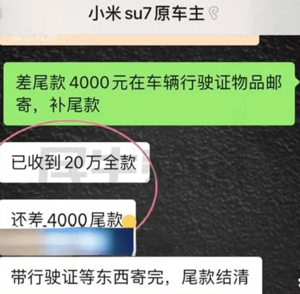 据小莉帮忙报道,河南郑州弓先生在9月7日通过网络平台得知有人出售二手小米SU7,随即决定前往河北石家庄进行购买,并支付了205000元的购车款项。