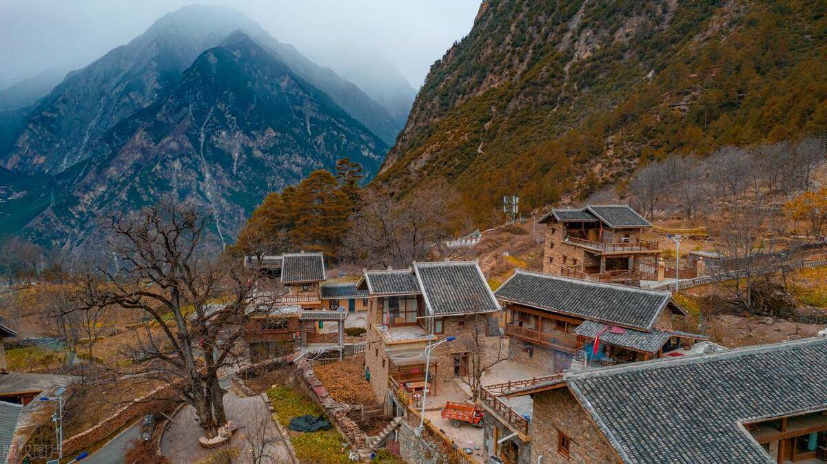 藏匿山野的色龙村,38户嘉绒藏族人家是仙居守护者,他们与漫山松林和百亩芍药为伴,共享自由山风。石头房子依山谷而建,傍大渡河而居,山间云雾缭绕。深秋时节周围山林金黄,山顶偶有积雪,听到的几乎都是白噪音,妥妥的世外桃源。