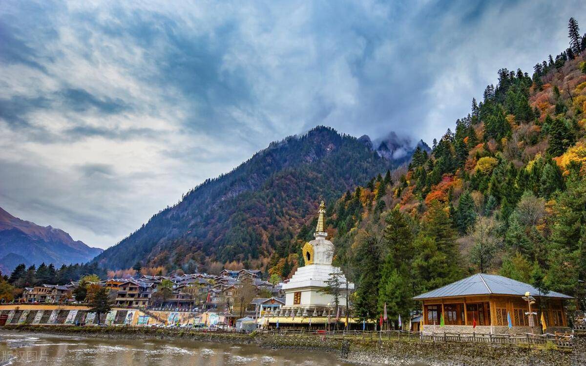 阿坝州黑水县的羊茸哈德,比丹巴的藏寨更加小众。落座于达古冰山山脚下,三面环山、一面环水,整个藏寨民族风情浓郁,五彩的藏家建筑与七彩经幡交相辉映。搭配深秋的彩林,一抹炊烟升起,何尝不是仙境。
