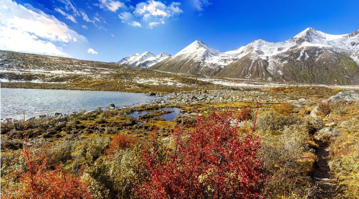 金川情人海一到金秋时节就进入了高光时刻,高山海子周围的草甸与树木色彩会变黄。顺着太阳河逆流而上,两岸高山峡谷、原始森林密布,路旁的瀑布,真的非常壮观。10月底-11月上旬,彩林的颜色最佳。