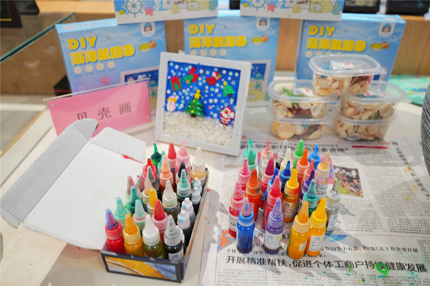 民俗体验区:孩子可以在这里体验非遗面塑制作,沙雕制作,贝壳画,芦苇画等一系列的手工制作。