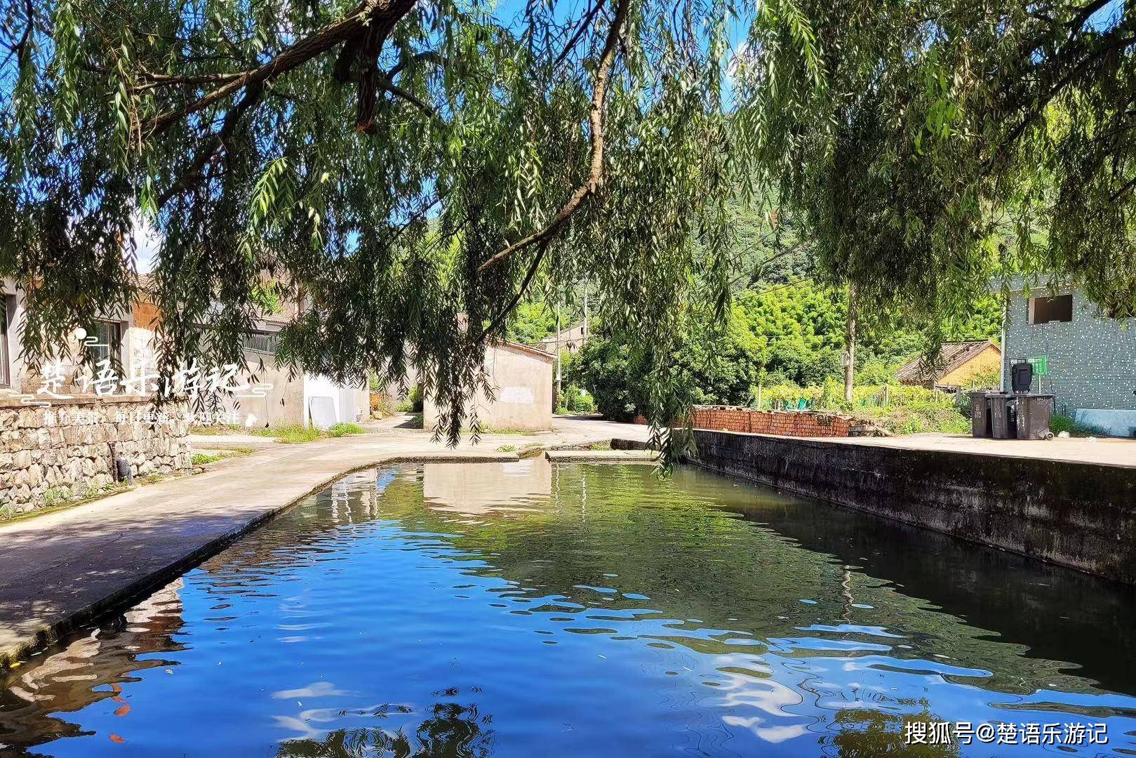 从村口的道路走进去,路边有一棵古老的柳树,树下是一个池塘。这棵柳树高大繁茂,枝叶把半片池塘都给遮蔽起来,使树下成为清静凉爽之地。村里将山泉水引入池塘,并在池塘边修建了一个洗涮台。