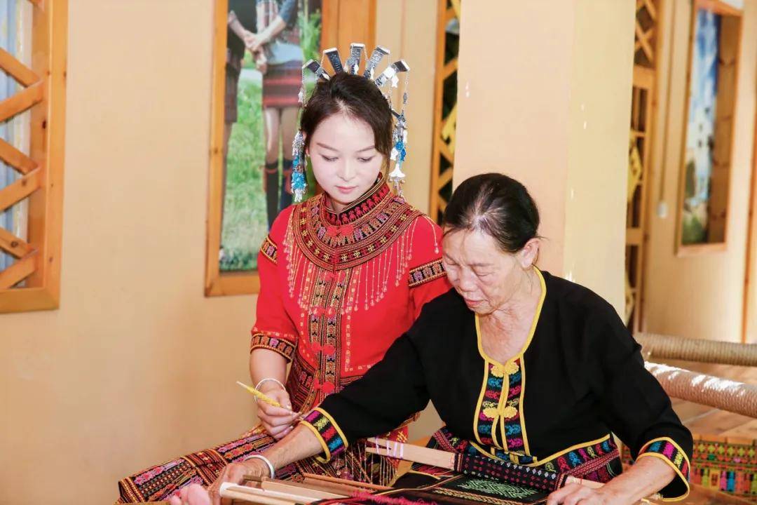 活动的最后一站来到了三亚市育才生态区南塔村,参观了2024年三亚市育才生态区非遗成果展,体验了包括崖州民歌、苗族盘皇舞在内的多项非物质文化遗产项目。