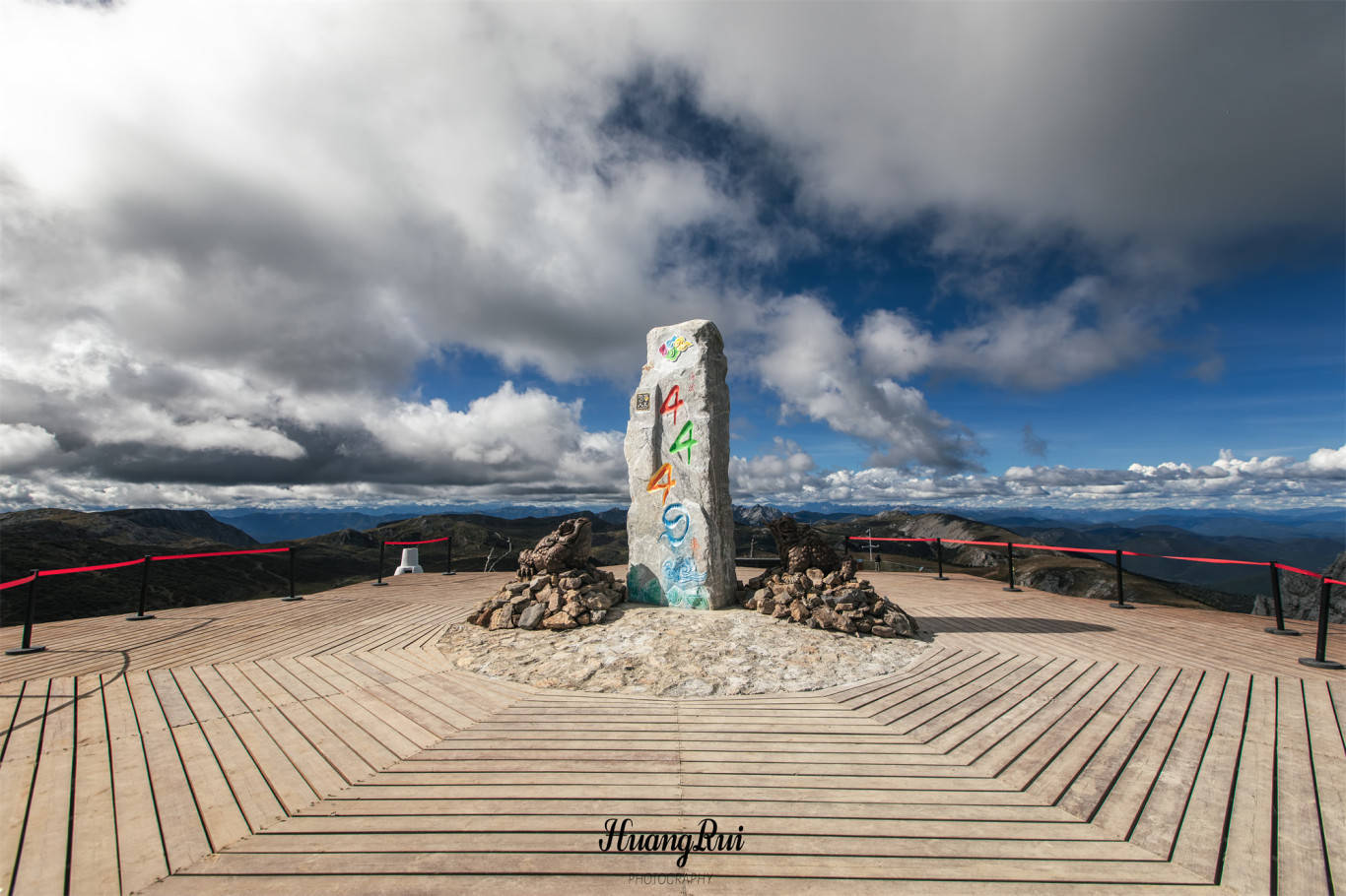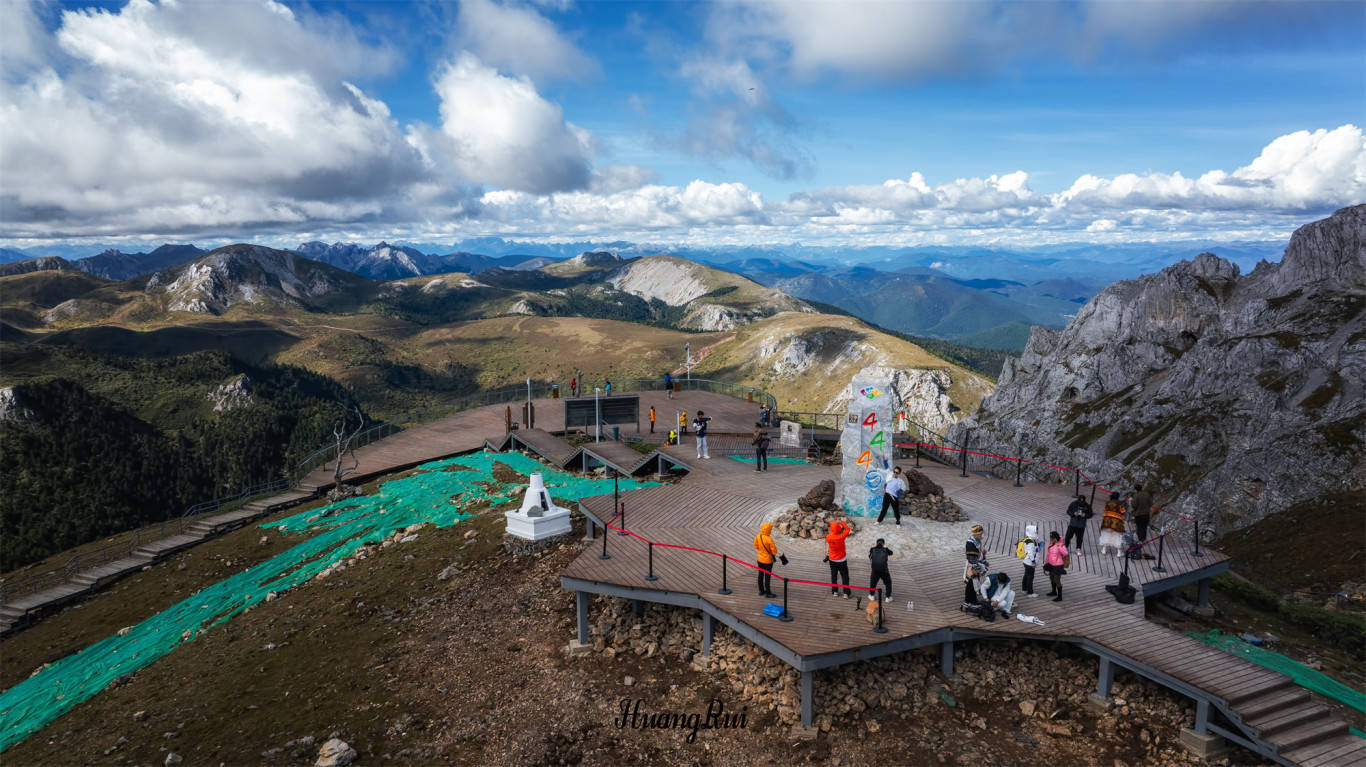 山顶上有块颇有藏式风格的石碑,刻着4449,代表着这里的海拔高度。这是非常值得拍照打卡的地方,大家不能错过。当然温馨提示下,由于山顶温差大,风也很大,游客需携带足够的保暖衣物,并做好防寒措施。如果需要航拍的朋友,注意飞速,合理操控无人机。