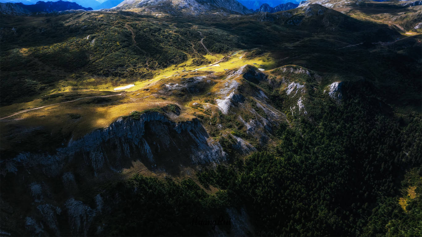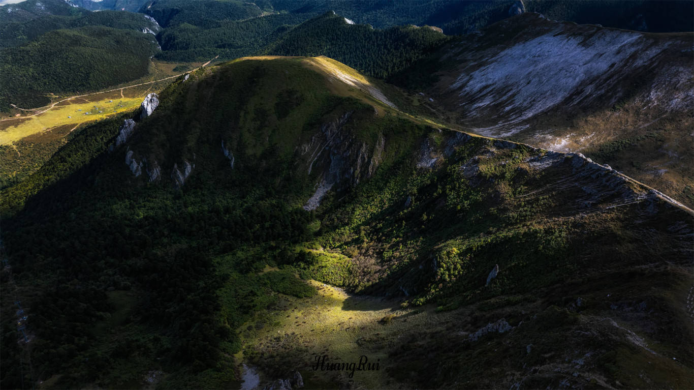 石卡雪山主峰海拔4449米,是香格里拉市区附近海拔最高的地方。站在山顶,可以环视四周,北眺纳帕海,南望千湖山,东观松赞林寺和独克宗古城,西面则是金沙江的奔腾不息。这里的壮丽景色让人心旷神怡,仿佛置身于仙境之中。在香格里拉市区无法航拍,在石卡雪山山顶可以弥补这个遗憾。一眼囊括香格里拉全城。