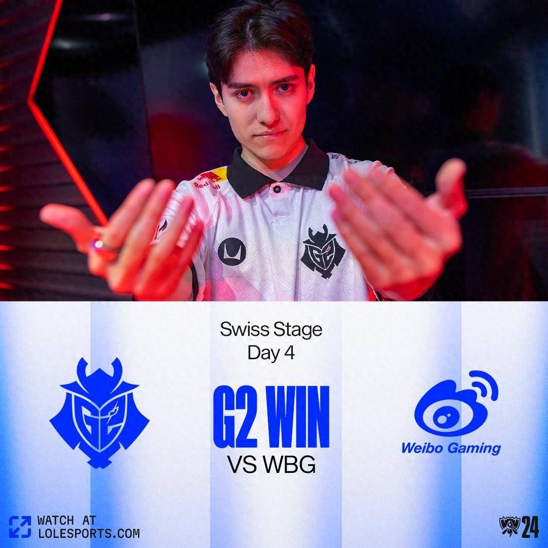 北京时间10月6日,S14全球总决赛瑞士轮第三轮1-1组,G2击败WBG进入瑞士轮2-1组。