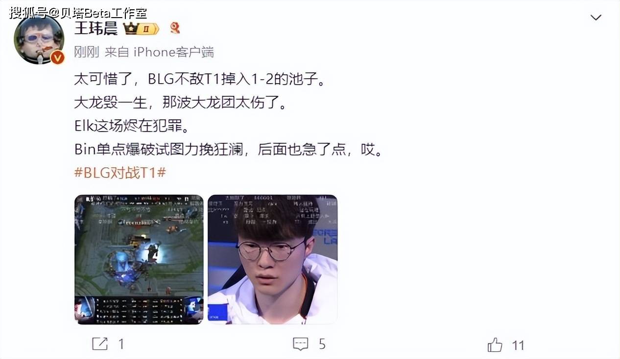 另外《体坛周报》记者王玮晨则是认为:BLG大龙毁一生,ELK的烬在犯罪,Bin前面尽力了,后面也急了。