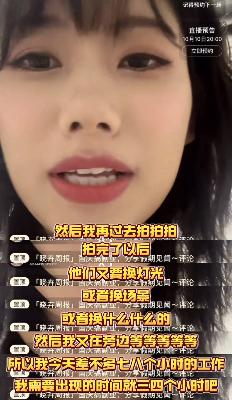 搜狐娱乐讯 近日,脱口秀演员赵晓卉在直播中说当明星没有上班辛苦,引发热议!她表示:“我觉得当明星确实没我上班辛苦啊。就比如说,你要拍一个广告或者怎么样的,因为有很多要准备,道具老师要准备,灯光老师要准备,然后我就要一直在等,等他们准备好以后呢,然后我再过去拍拍拍,拍完了以后,他们又要换灯光,或者换场景,然后我又在旁边等,所以我今天差不多七八个小时的工作,我需要出现的时间就三四个小时吧。”