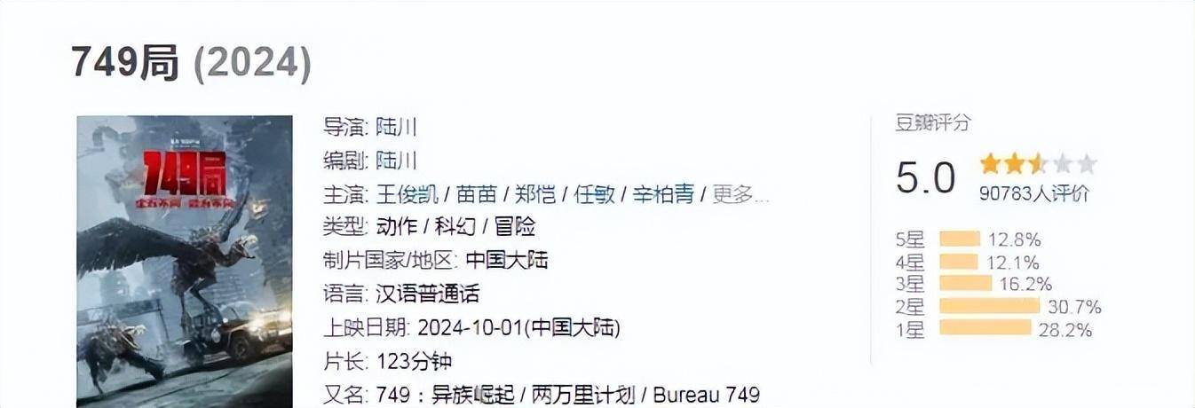 也就是说这三天基本是每天一亿的票房增长,这个成绩按道理而言,那《749局》妥妥的爆款啊,可是从网上的评论来看并非如此。
