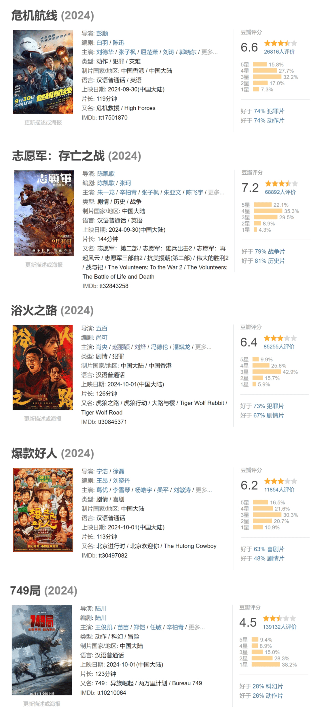 另一方面,《749局》已经吸走了这个档期大部分的差评火力。