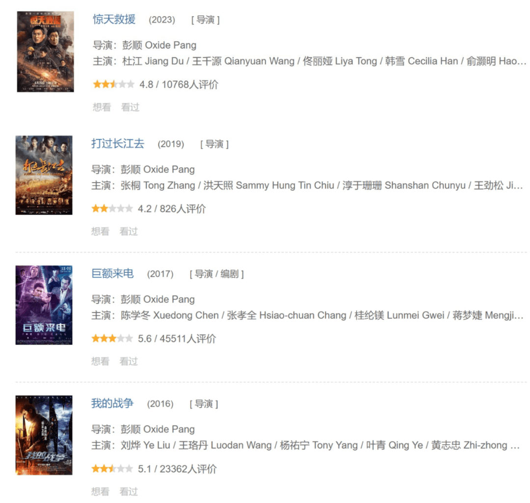 但靠着视听轰炸就能取得高票房的红利时代早已过去。彭顺这几年搞了多部 战争片、犯罪片,先后拍摄了抗美援朝题材的《我的战争》,“电信诈骗”题材的《巨额来电》等,口碑评分都很不理想 。