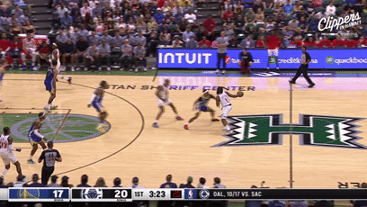 第二节,快船被勇士10-5反超比分,随后哈登重新上场并且带队与勇士展开拉锯战,哈登抢断库里后持球强硬造杀伤罚球得分,单节又送出4次助攻,不过半场打完快船49-53落后4分;值得一提的是,小卡一直坐在场边观战。