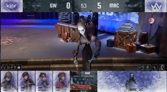 GW的求生者选择了佣兵、画家、“慈善家”、幸运儿(BAN歌剧演员、时空之影);MRC的监管者XC选择了“使徒”。(BAN先知、祭司、哭泣小丑、舞女)