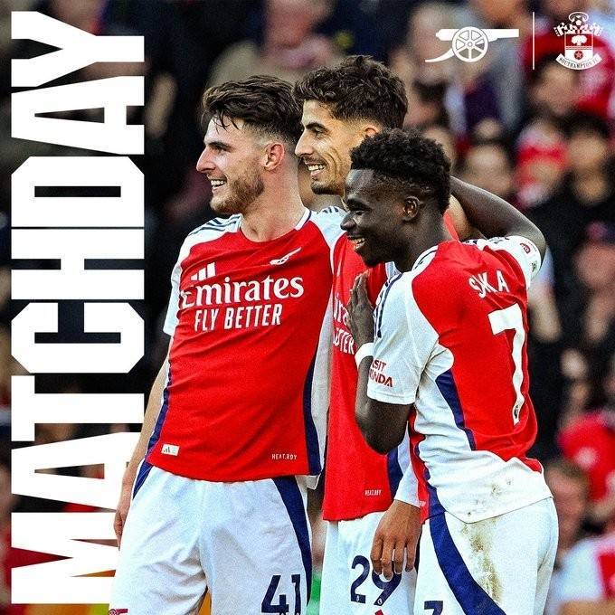 阿森纳晒战南安普顿海报:赖斯、哈弗茨、萨卡出镜