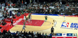 杀到兴起,威少爷强行突破,秒传小乔丹完成暴扣。