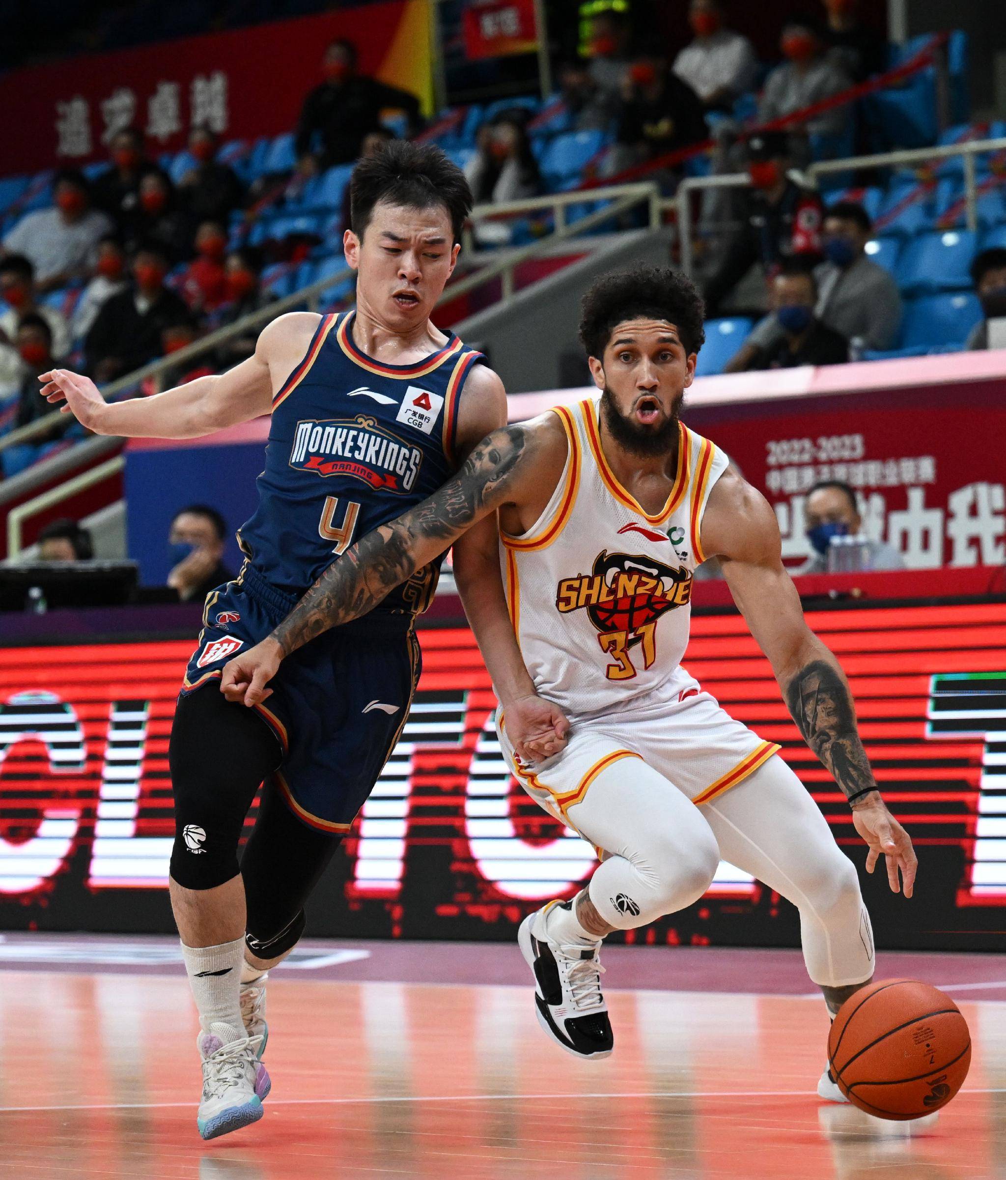 当日,在浙江杭州进行的2022-2023赛季中国男子篮球职业联赛(CBA)第一阶段第五轮比赛中,深圳马可波罗队对阵南京同曦宙光队。