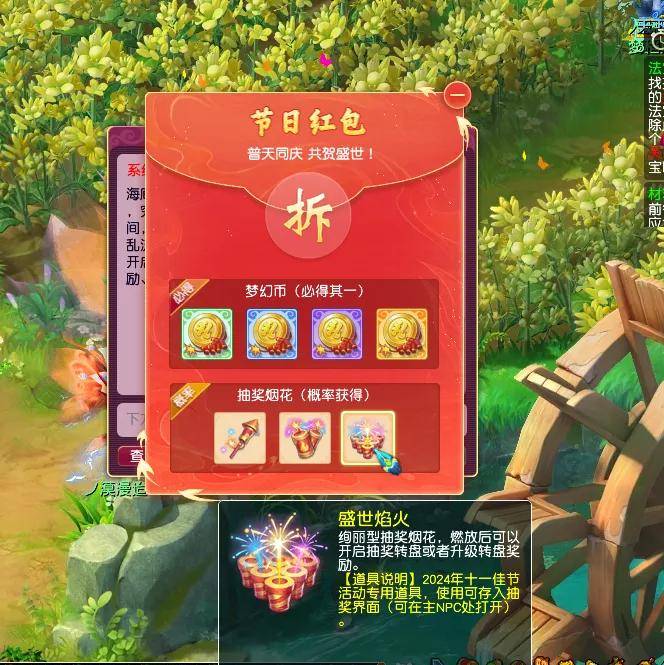 完成环任务还可以获得抽奖烟花,抽奖烟花可以积累升级,最高可获得2024101两梦幻币!