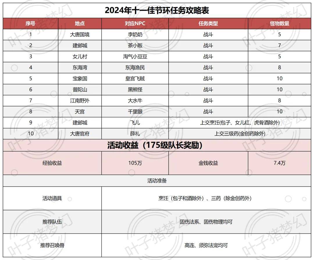 目前,梦幻西游2024年十一佳节活动已经上线全服。本次活动共分为环任务、小副本、挂机玩法和特色玩法,算是奖励中等偏上的节日活动。下面,就给大家带来本次活动攻略吧!
