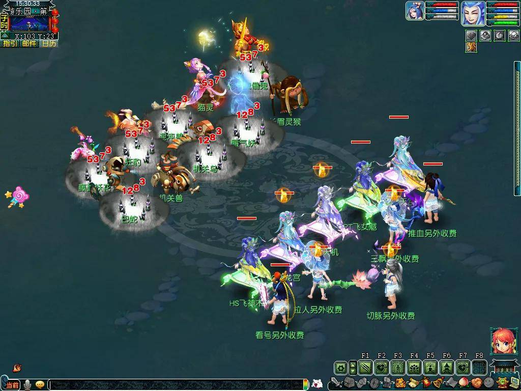 第二场战斗为变化莫测,战斗目标主要以击败主怪为主。怪物共有两种形态,第一种为“弱点击破”,这个时候需要点杀前面野猪精;第二种为“群体突击”,这个时候需要使用群秒法术。如果能在4回合内击败主怪的话,就可以获得较高的评分奖励。