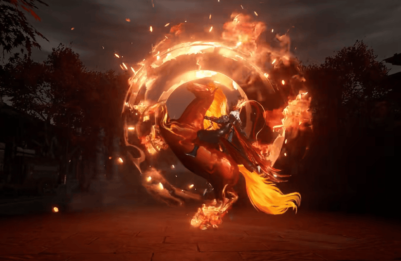 更有趣的是,男玩家们骑着以赤兔为灵感设计的坐骑【焰天骏】,马儿仰天长啸,火焰围绕其周身旋转,这画面,直接把玩家们钓成了翘嘴。