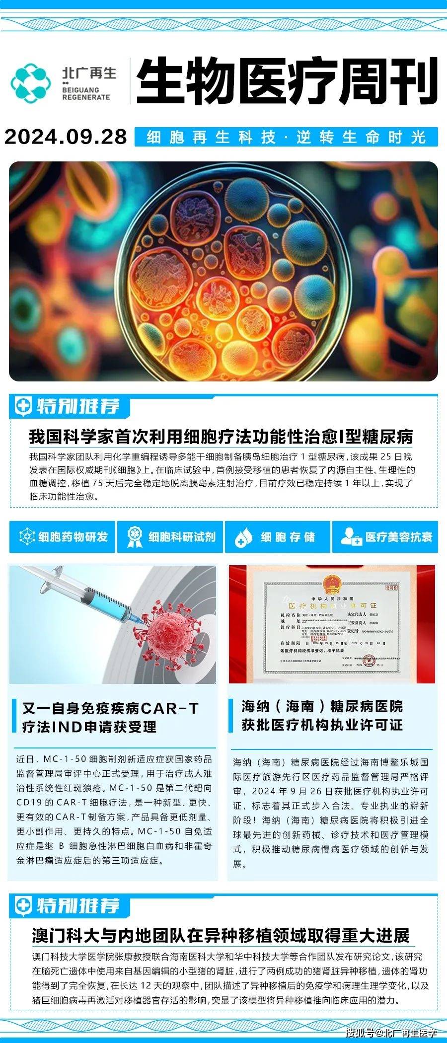 我国科学家首次利用干细胞再生疗法功能性治愈I型糖尿病