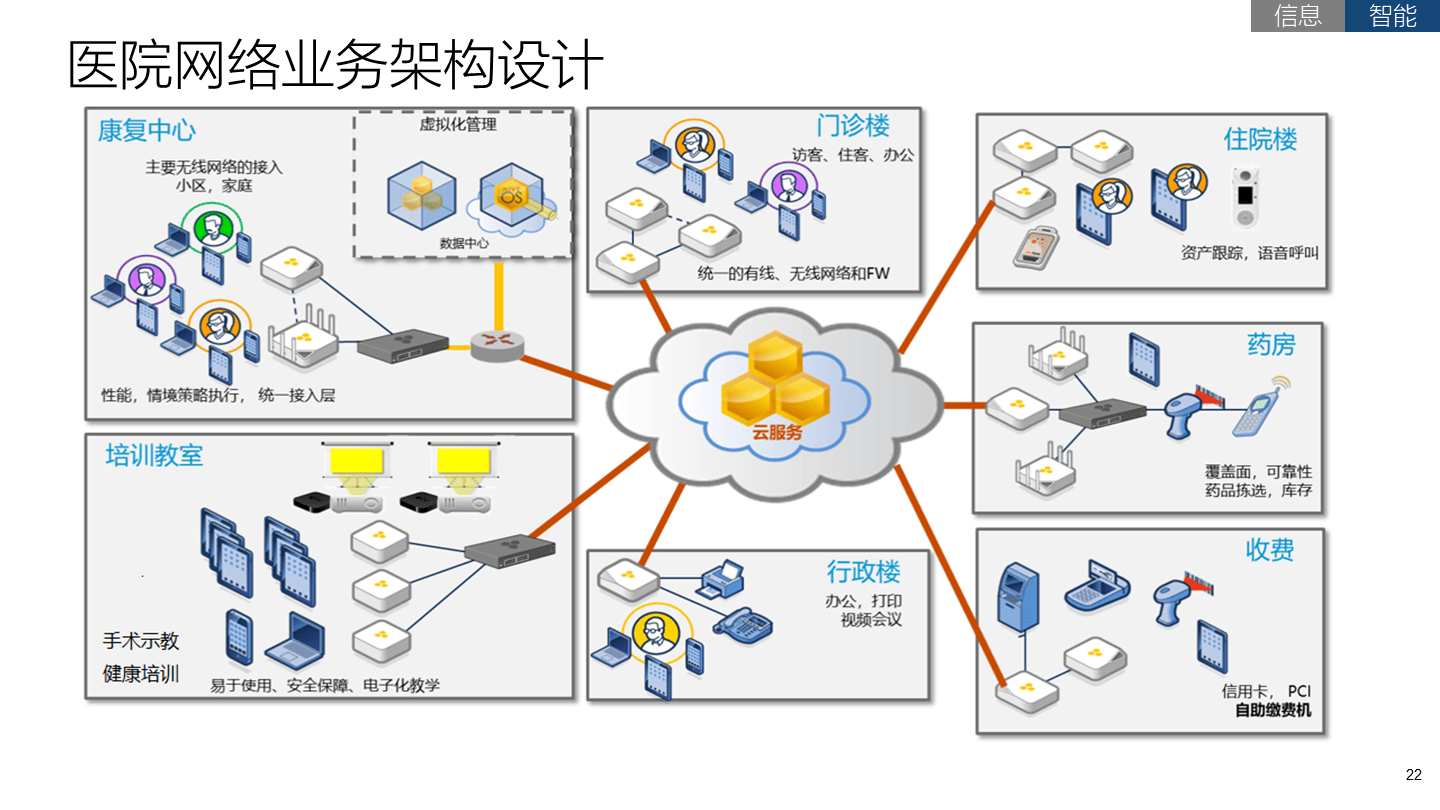 以服务医疗业务为目标“物物相连的互联网”,常见的物联网实现技术有WiFi、蓝牙、RFID、ZigBee、LoRa等,主要应用场景包括:院前急救、智慧病房、院内人员资产管理、医疗安全管理以及院外恢复监控。