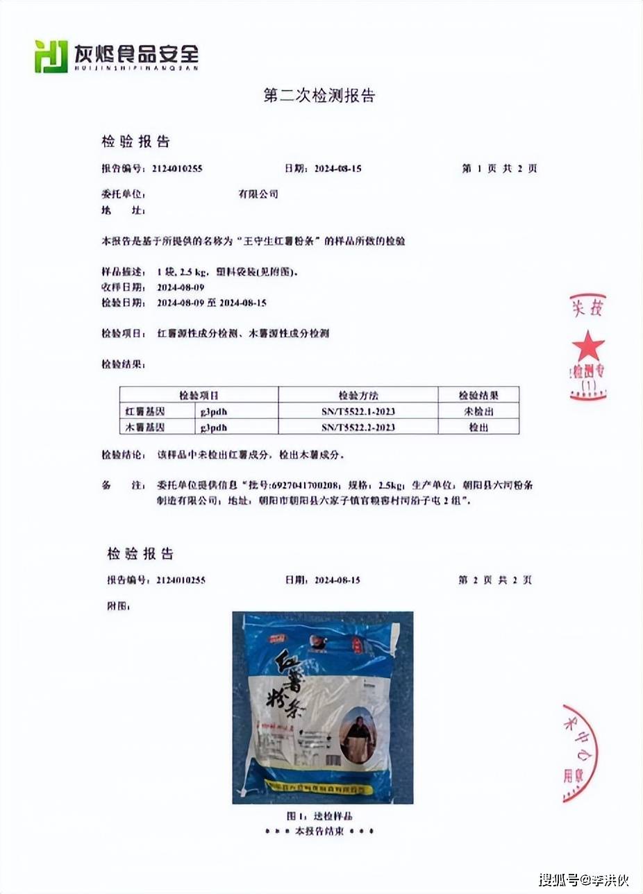 灰烬发帖称先后三次将东北雨姐销售的红薯粉条送检,结果都未检出红薯成分,只检出木薯成分。红薯粉丝厂家也自曝自家粉丝确实含有三分之一的木薯粉,但还是有红薯粉成分。
