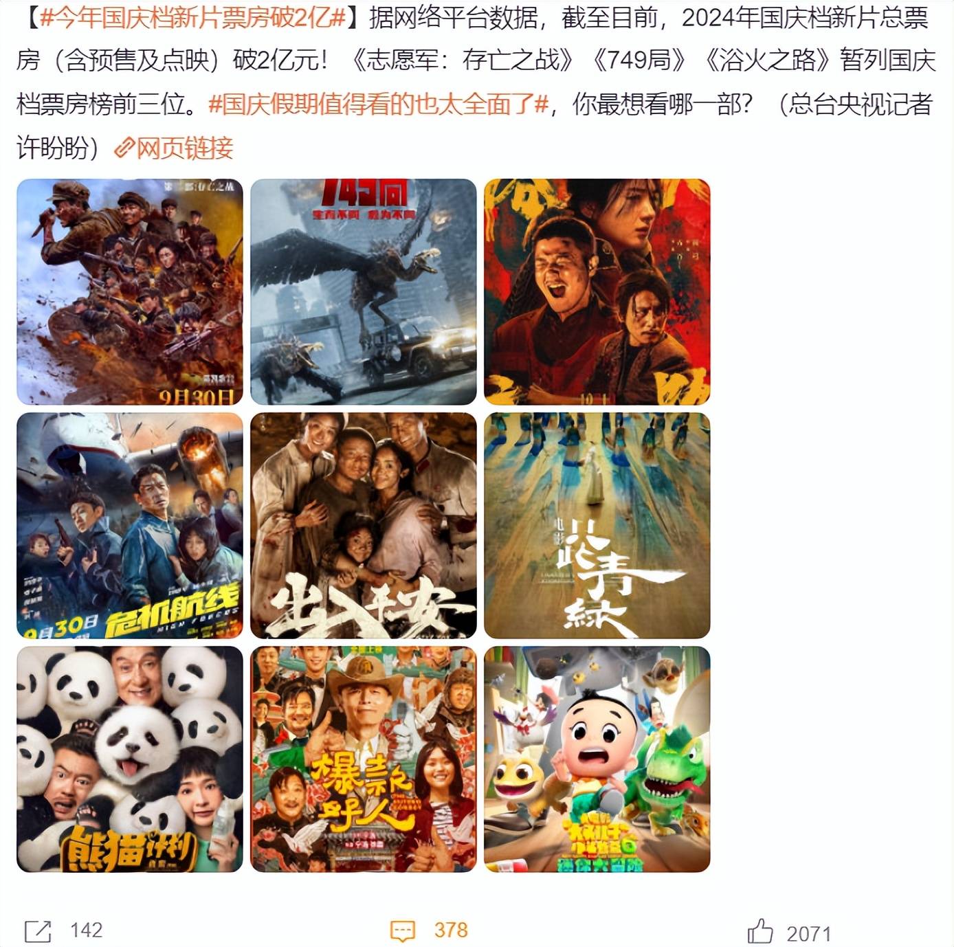 但国庆档新片的热度和话题性并不差,虽然很多人因为各种原因没去电影院买单观影,但对新片的口碑和票房表现,还是保持关注。