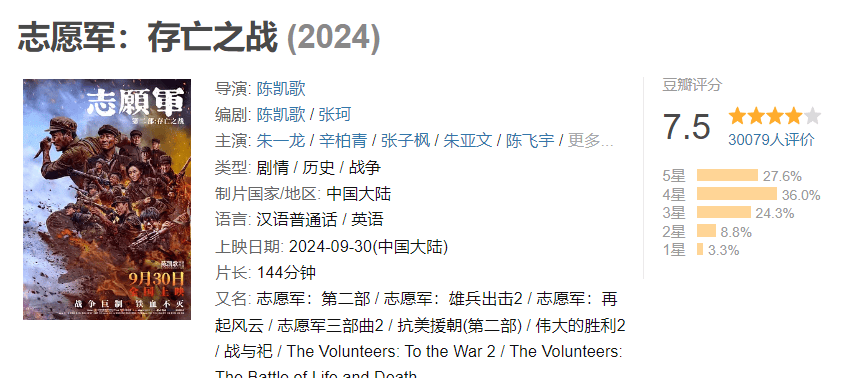 陈凯歌的《志愿军2》虽然也不可能成为今年的票房黑马,但是很有可能成为国庆档的票房冠军,甚至可能超过十亿,这比第一部不到五亿的票房好很多,口碑也有所逆转,这对陈凯歌来说也算好事,也算挽尊。