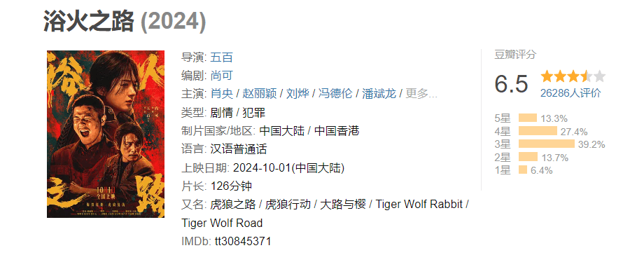 都是肖央主演口碑差不多,《浴火之路》票房好《出入平安》却撤档