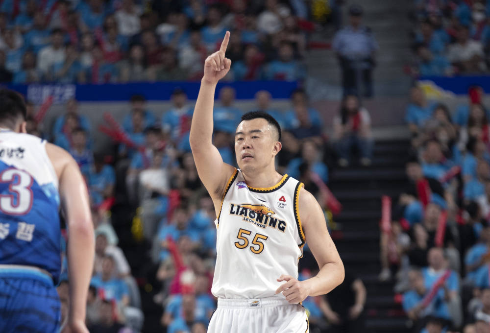 5月20日,辽宁本钢队球员韩德君在比赛中庆祝得分。新华社记者 雒圆 摄