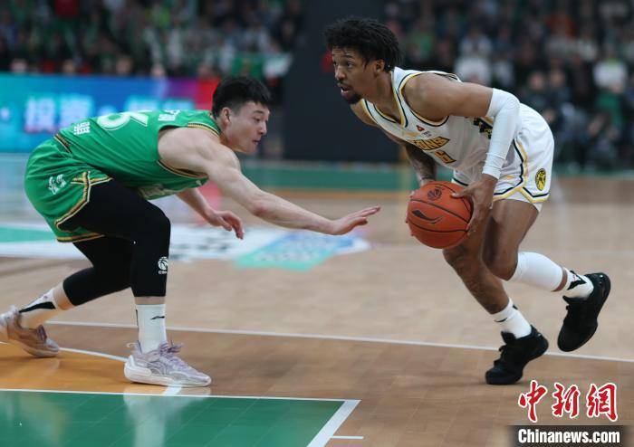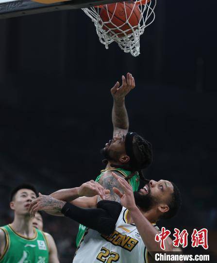 图为浙江东阳光药队球员奥卡福(前)在比赛中防守。中新网记者 于海洋 摄