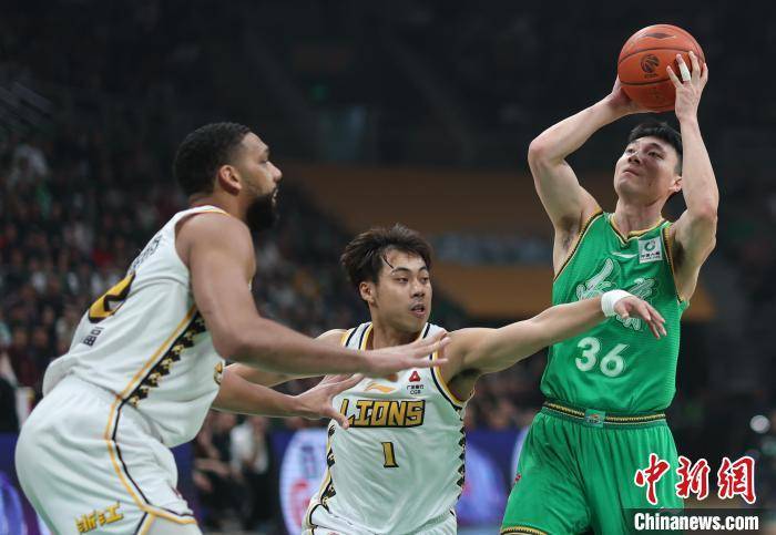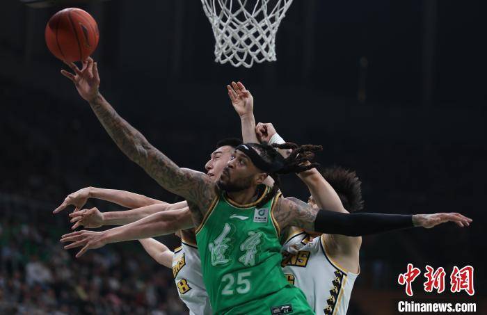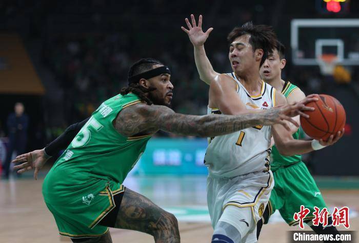 图为浙江东阳光药队球员许可(右)在比赛中进攻受阻。中新网记者 于海洋 摄