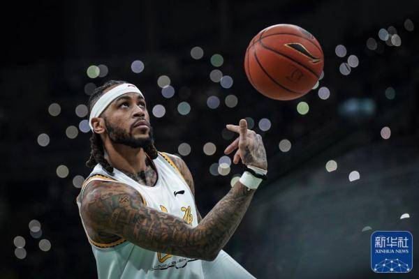 ↑辽宁本钢队球员莫兰德在赛前练习。